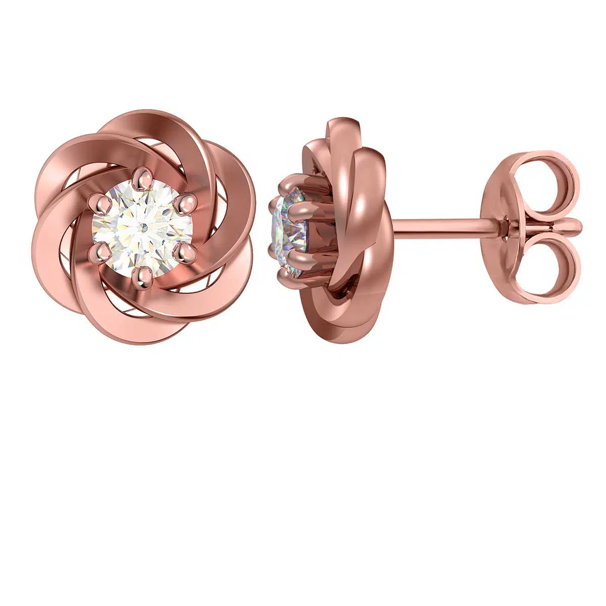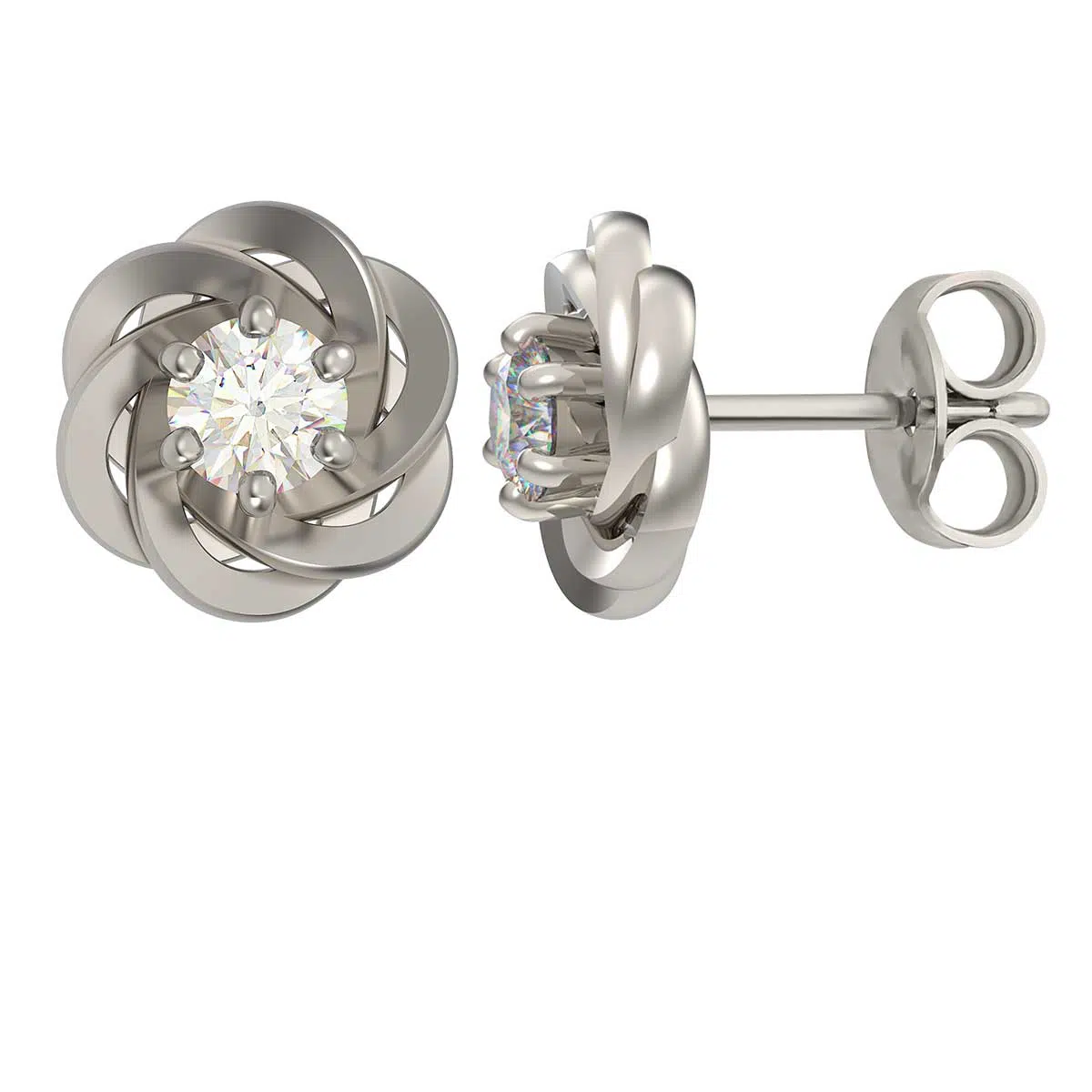 0.20 CT T.W. Diamond Braid Stud Earring in 14K White Gold / Yellow Gold / Rose Gold.