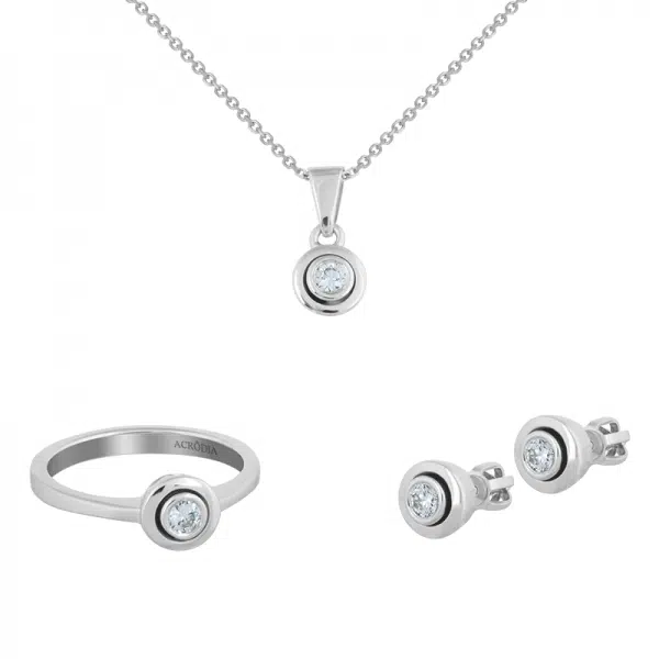 0.50CT. T.W diamonds jewelry set in 14K white gold, ring earrings and pendant.